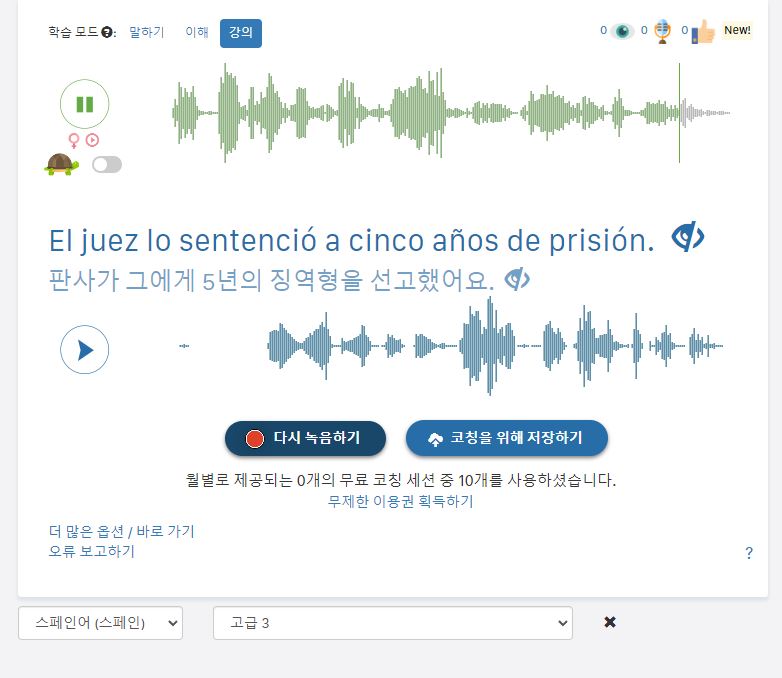 스페인어와 한국어 둘 다 동시에 번역되는 오디오 사전, Speechling