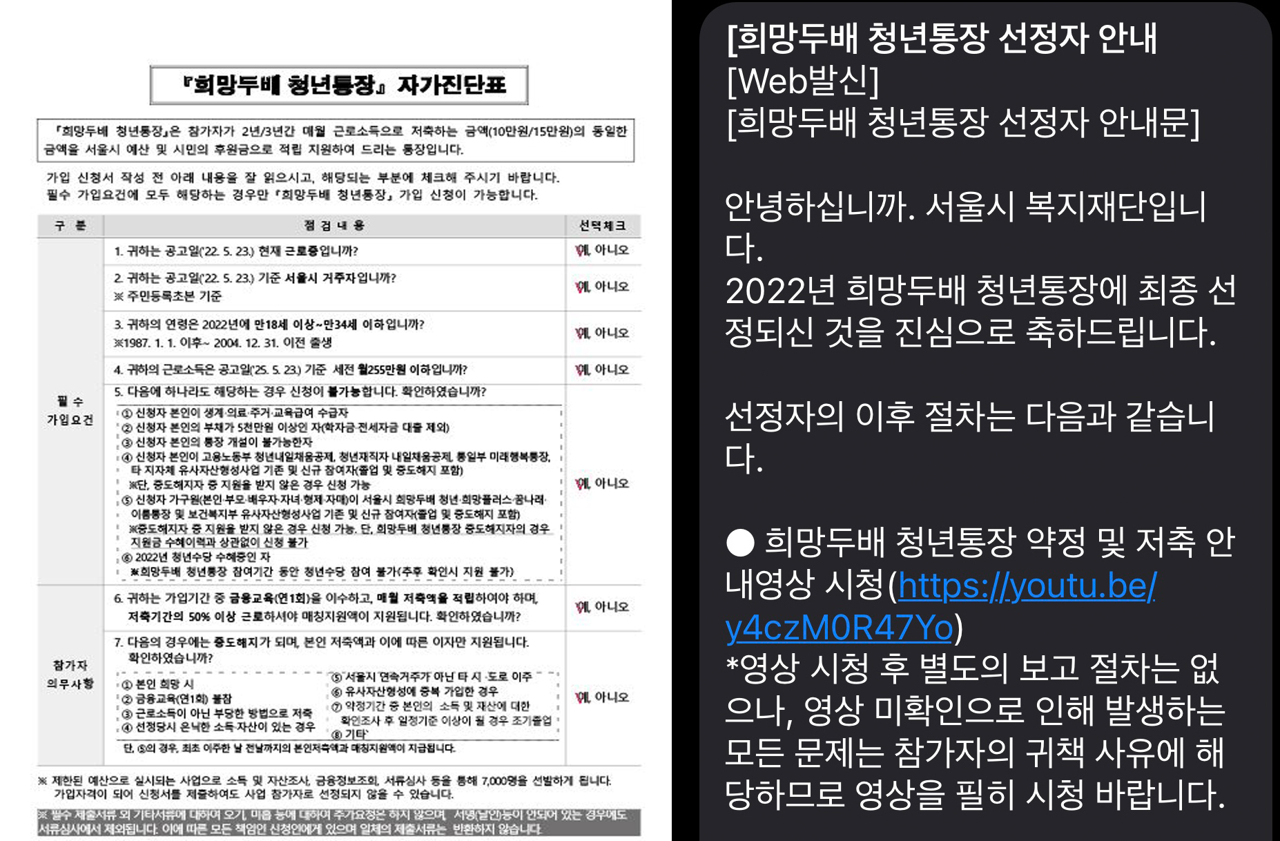3) 나의 희망두배 청년통장 신청 및 선정 과정