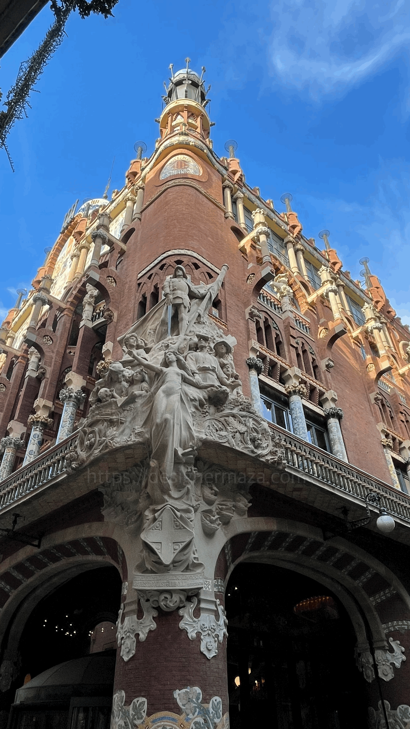 바르셀로나 개선문을 구경한 후, 20여분 정도 걸어 까탈루냐 음악당으로 향했습니다. 까탈루냐 음악당의 경우 가우디의 건축학교 스승이기도 했던 아르누보 양식의 대표적인 건축가 도메네크 몬타네르가 지은 건물인데요. (제가 예전에 쓴 산 파우 병원에 대한 글을 이미 보신분이라면 몬타네르라는 이름이 아마 익숙하실 거라 생각됩니다) 까탈루냐 음악당은 산 파우 병원과 함께 아르누보 양식을 대표하는 건축물로 유명한 곳이기도 합니다. '세계에서 가장 아름다운 음악당'이라 불리는 곳이기에 바르셀로나 여행을 하게 되면 꼭 들르게 되는 필수 명소이기도 합니다.